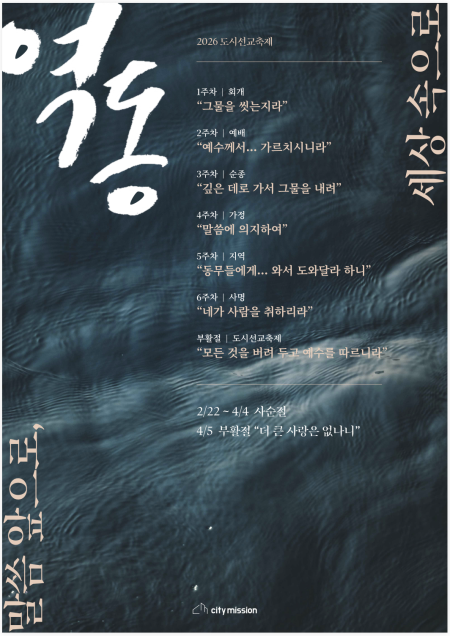 샬롬. 시티미션교회는 2026년 "사람을 살리는 도시 선교사"의 주제를 품고 달려갑니다. 1/4분기(12~2월)은 'G..